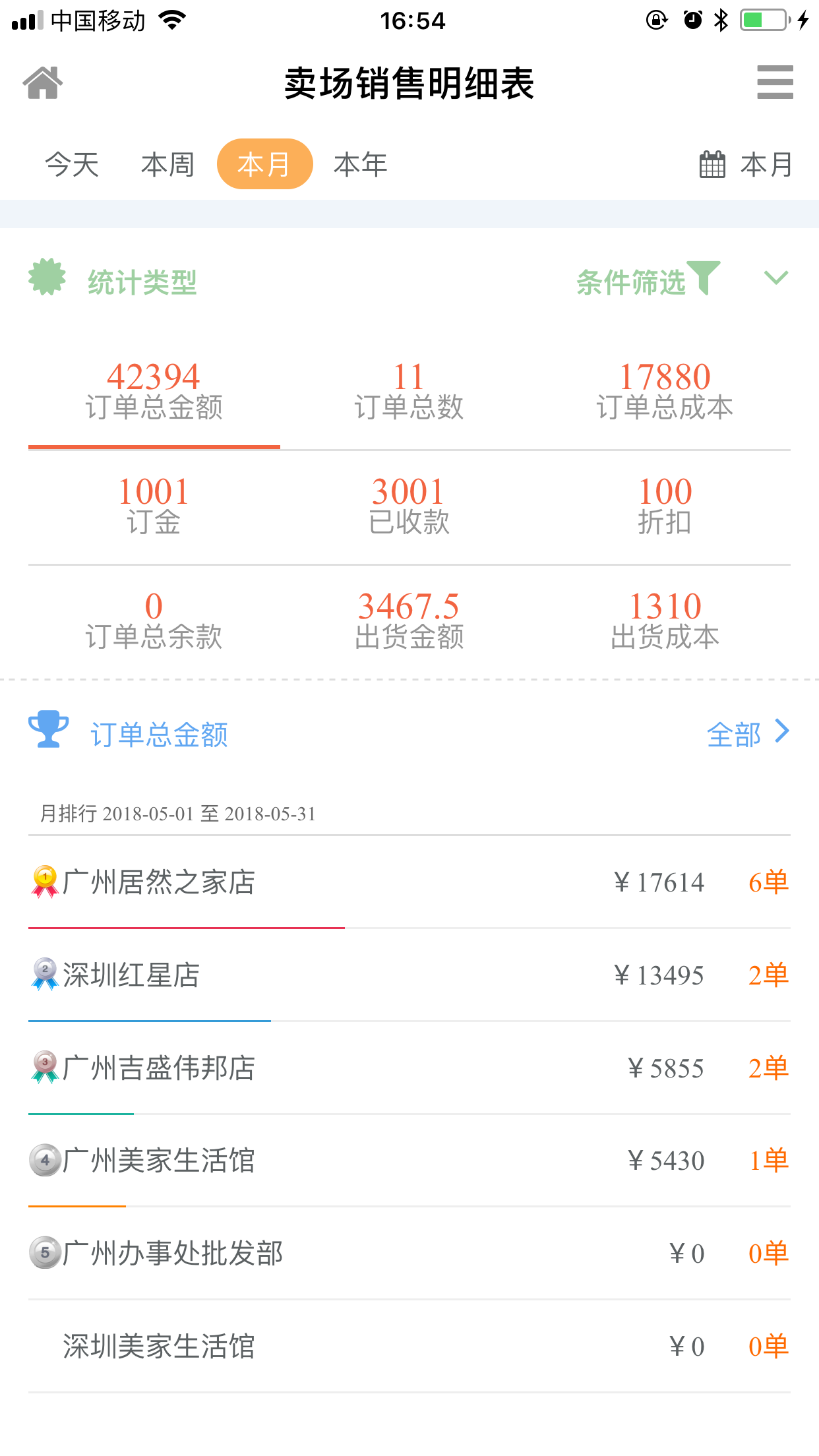 拿出手机来,就可以看到今天店里开了几单